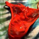 Tanga rosso con pailettes...usato in cam!